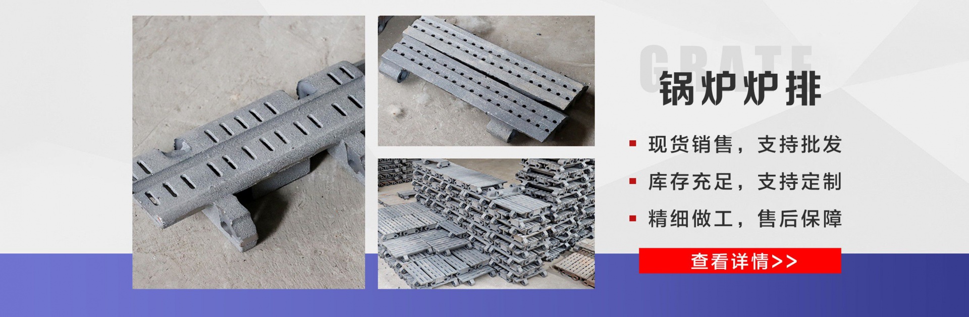 麗新機械配件廠位于“江北水城”之稱的聊城。公司主要銷售:鍋爐爐門,爐篦子,爐排片,鍋爐爐排,省煤器管,鍋爐風帽,鍋爐配件等多種產品,公司堅持以市場為導向、以誠實守信為經營理念,竭誠為廣大客戶服務!  爐排是鍋爐或工業爐中堆置固體燃料并使之有效燃燒的部件。整個爐排主要包括框架和爐排片兩個部分。爐排片通常用鑄鐵制造,組裝后片與片之間保持必要的通風縫隙,并且往往還在爐排下邊設置可以調節風量的分隔的通風室,以便空氣通過縫隙進入燃料層燃燒。燒盡后的灰渣用人工或機械方法排出。爐排有固定式、移動式、往復式、振動式和下飼式等類型?! ″仩t爐排操作實現了機械化,減輕了司爐工的勞動強度??煅b出廠,到使用現場后,裝接閥門儀表,鼓、引風機、煙風管道、省煤器、除塵器、出渣機。上煤機及水電路等即可運行,且具有起動生火快等特點?! 」緫{借豐富的規格品種,過硬的質量,合理的價格,完善的服務,不斷地受到新老用戶及業內人士的肯定和信任,我們本著及用戶之所及,想用戶之所想的服務宗旨不斷地拼搏,進取,在此對多年來支持我們的各行各業的新老朋友表示由衷的感謝!  我公司的理念:“誠信、合作、互利、雙贏”!以最大的努力滿足客戶的需求。...